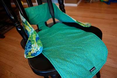 On our family vacation a while back, our friends brought this cool fabric-high-chair-alternative-contraption for their son. It was clearly a well loved, handmade relic from the late 70’s, made from faded Sesame Street fabric (sans Elmo). After both 14 mo old babies used it the entire trip, I quickly took some measurements before sending it home with our friends.