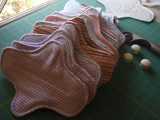 1 night + 7 girls and their sewing machines = 20 cloth menstrual pads for girls in Africa (they’re finished except for the snaps-expect an e-mail mommymita). We probably could have gotten a few more finished if not for all the awesome menstruation related stories this sort of project inevitably brings to the surface.