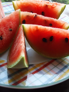 Mmm, it looks perfect! I have harvested three small watermelons, with less success. Two were nearly all green. The third was mostly ripe, but not perfectly ripe. Still good. I can’t figure out how to know when they are ready, so I guess I’ll just leave the rest of them until they are falling off the vine.