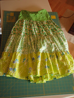 Before: A thrifted women’s tiered skirt.After: A girl’s perfect spinning sundress.I know, I can’t seem to let go of summer.