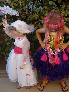 “Jolly Holiday” Mary Poppins from two Halloweens ago and a Hula Girl courtesy of Mom’s Hawaiian souvenirs.