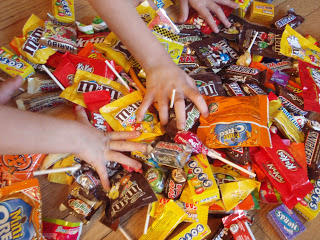 As in years past, the girls happily chose a small bag of their most favorite candy (Dad and I picked a few of our favorties too) and we boxed the rest up to send here.