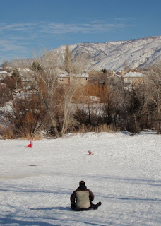 Our beautiful day of sledding started off with Todd scaring the bejeezus out of Pumpkin. Just picture a three year old sailing down a long icy hill on a bright green disc screaming at the top of her lungs the whole way.