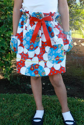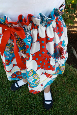 Princess happily ditched her plain navy bottoms for this paperbag waisted skirt made from a piece from the ever-giving “estate sale jackpot” even though she reminded me it was really “primary colors” not “patriotic colors”. At least she’s learning something in art class.