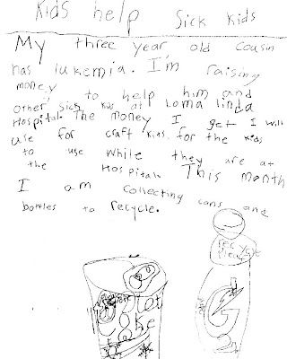 That is awesome! What great kids. You could also encourage the parents to put themselves on the National Marrow Donor Registry. Your nephew? might not need a marrow transplant but so many people do and you never know who might be a good match. Sometimes all they need is platelets or plasma too. My husband and I put ourselves on the list 5 years ago at a blood drive because I couldn't donate blood that day. 2 years ago just before Christmas we get a package saying he's a match for a man with acute myologenous lukemia, last summer (not this year but 2008) we drove up to NC to Duke and he donated bone marrow to this total stranger and as far as we know saved his life. It was an amazing experience, cost us nothing but some time and him a bit of pain and saved someone's life.