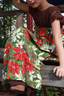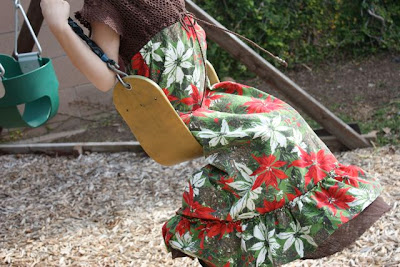 The second Christmas dress made from my thrift store tablecloth finds was a little more involved, but I still cut the ruffles on the bias and saved a lot of time hemming.